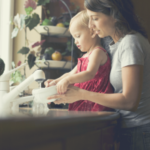 Toddlers love playing with water, so this is the perfect time to teach them how to clean dishes! Obviously, you’ll want to stick to plastic silverware for safety reasons, but you can show them how to handwash dishes or simply how to load them in the dishwasher.